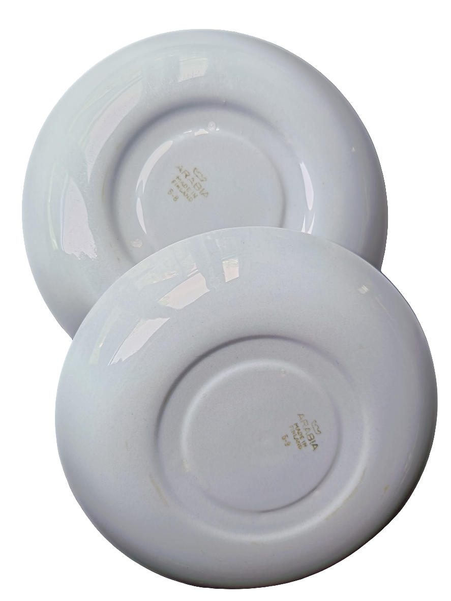Vaaleansininen Arabian Sointu-sarjan aluslautanen. Hyväkuntoisia, 2kpl, ei lohkeamia.