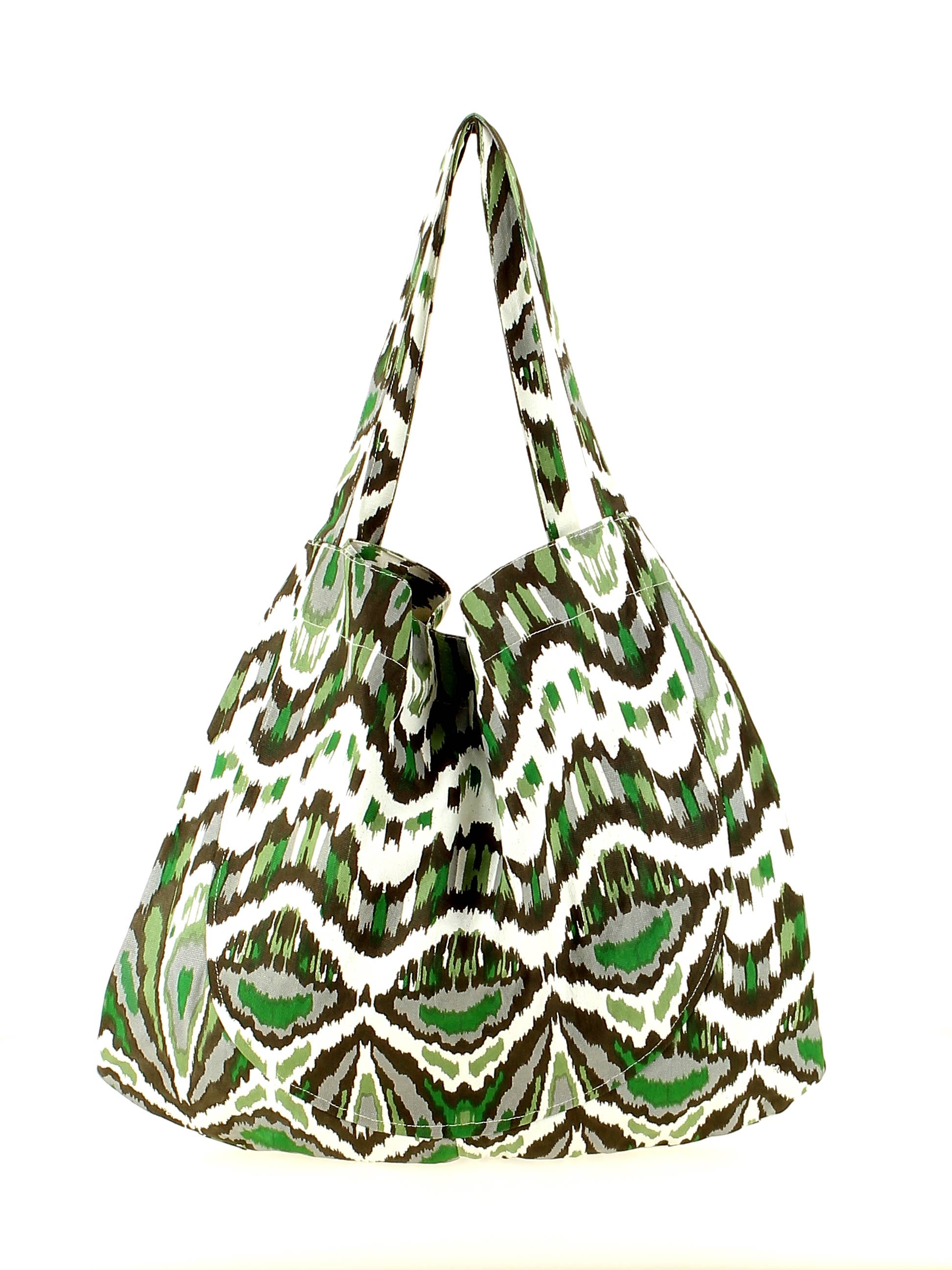 Cotton bag with khaki, gray, white, and forest green tie-dye prints. This bag features a double snap closure, allowing it to easily convert to an oversized bag, and an interior pocket with a zipper. The cotton canvas effect provides good support for this bag. Carried by hand or on the shoulder, it is the ideal accessory for long weekends, trips to the sea with family or friends! Tired of having to limit yourself when packing your things? Afraid of being cold and not being able to bring your favorite sweater or scarf? This adjustable-size bag will allow you to take all your must-haves with you!