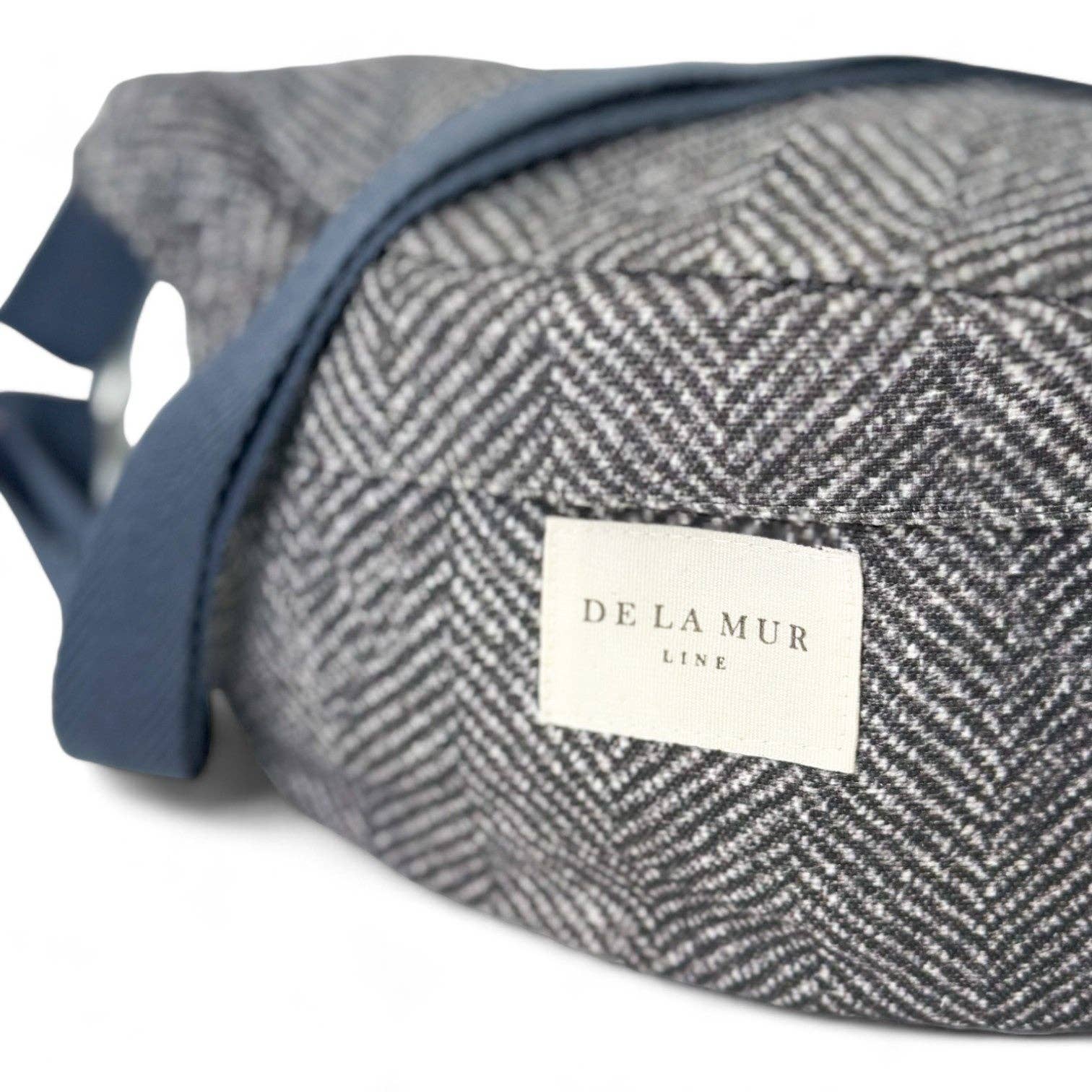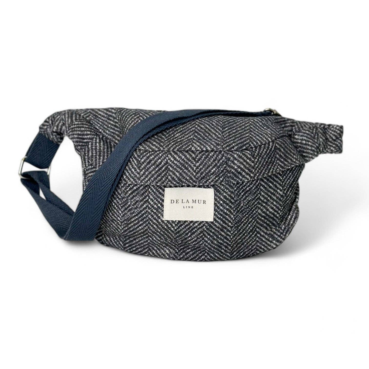 Shoulder bag with long adjustable handle made of dark gray cotton herringbone strap. With a fine fabric with a dark gray herringbone pattern. Top zip closure. Lined with thick gray fabric on the inside. For proper maintenance, it is advisable to wash it in the cold by hand and not to use a dryer.