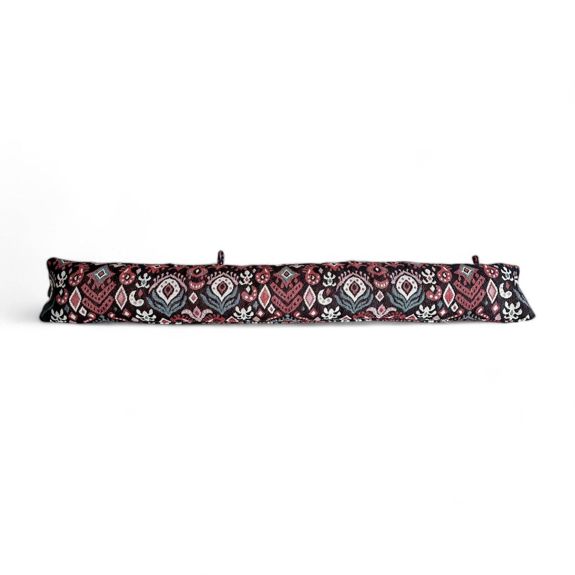 Windbreaker with padding. With small handles for hanging on the door. With thick jacquard fabric with geometric print in shades of pink and maroon. For proper maintenance, it is advisable to wash it in the cold and not to use a dryer.