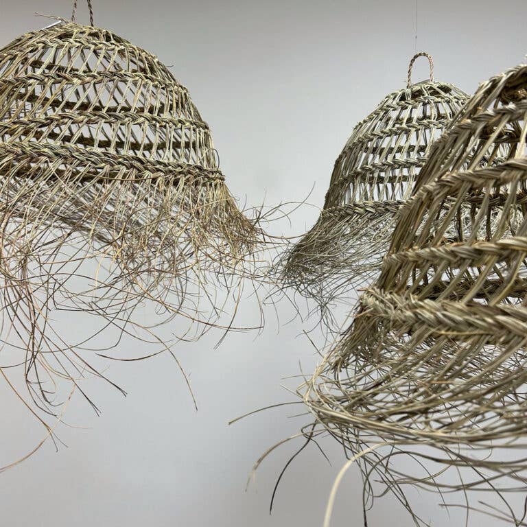 Tämä käsintehty lamppu on punottu meriruohosta, ja sen leikkisät ”sprietit” tuovat sisustukseen rentoa boho-tunnelmaa. Sopii sisätiloihin tai ulkokäyttöön katoksen alla – emme suosittele altistamaan kosteudelle. Lampun yläosassa on lenkki, josta se on helppo ripustaa. Valosarjan tai lampun kannan avulla siitä saa toimivan valaisimen, mutta se toimii myös pelkkänä koristeena.