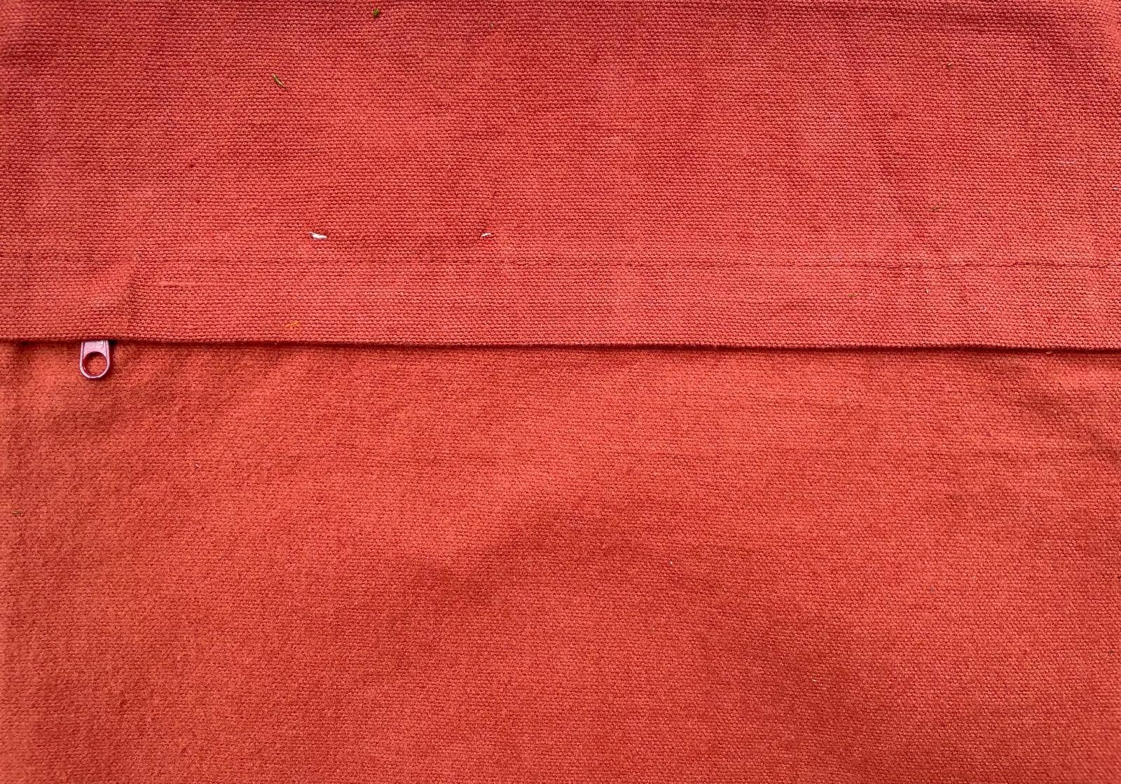 Orange-red cushion cover with paisley patterns in wool and cotton. This cushion cover, made of wool (44%) and cotton (56%), is handcrafted. To preserve it, we recommend hand washing or dry cleaning.