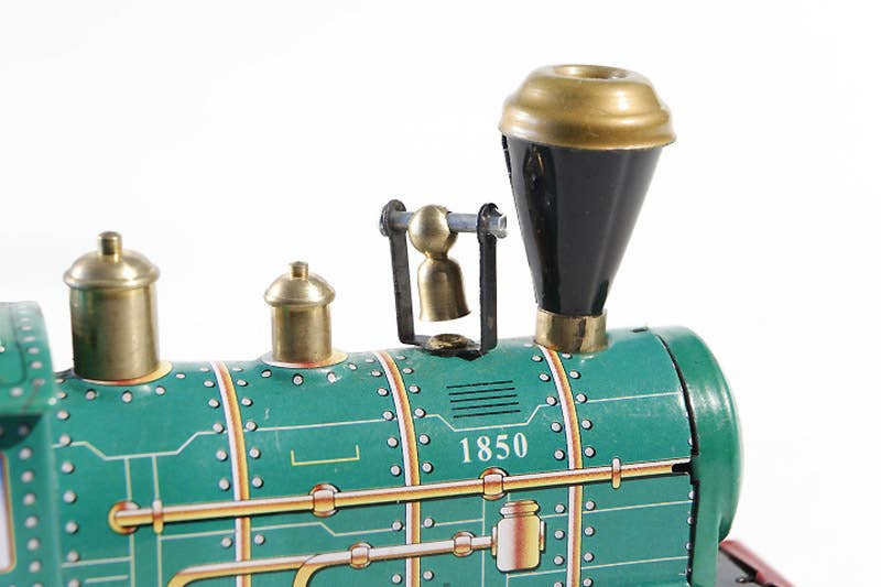 Ihana, nostalginen peltiveturi, joka vie ajatukset aikaan, jolloin lelut tehtiin metallista ja mielikuvituksesta. Klassinen vihreä höyryveturi hurmaa yksityiskohdillaan ja vanhanajan tunnelmallaan – täydellinen koristeeksi, lahjaksi tai kokoelmaan.