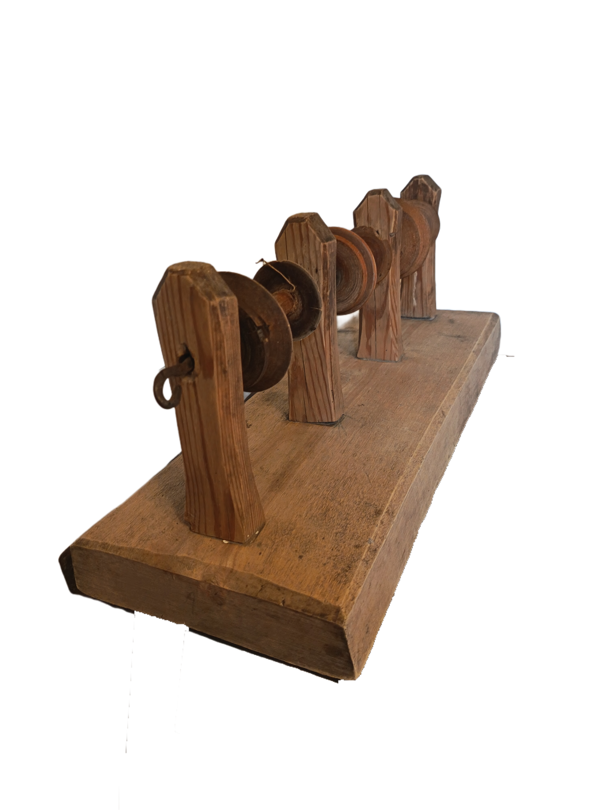 Vanha, tukeva lankarullateline, maalaamaton ollut, hienossa tukevassa kunnossa. Sisältää 3 lankapuolaa. Tämän voisi ottaa vaikka lahjapaketointikäyttöön, pysyy hyvin pystyssä pöydällä!