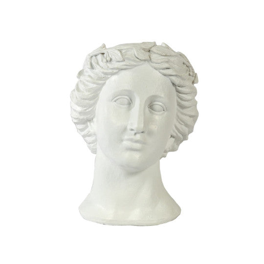 Tyylikäs pääveistoksen muotoinen ruukku tuo klassista eleganssia kotiin tai terassille. Antiikin estetiikasta ammentava muotoilu toimii näyttävänä sisustuselementtinä sellaisenaan, tai vaasina kuivakukille ja oksille.