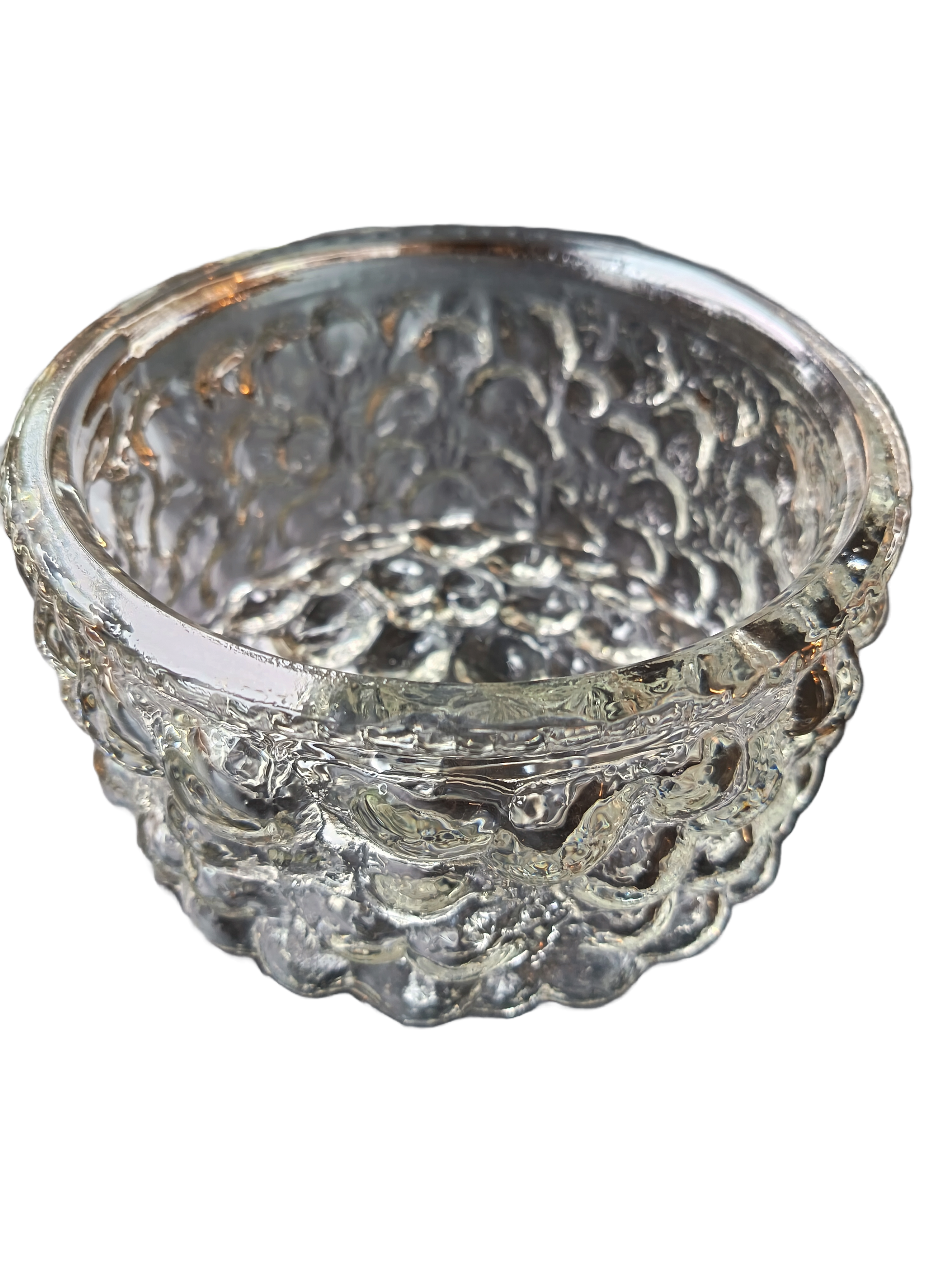 Halkaisija n. 17cm, korkeus 9,5cm. Ehjä ja kaunis muhkea lasikulho.